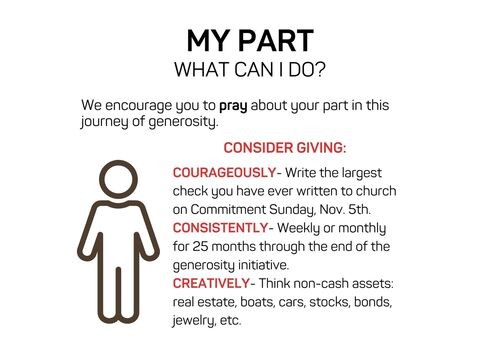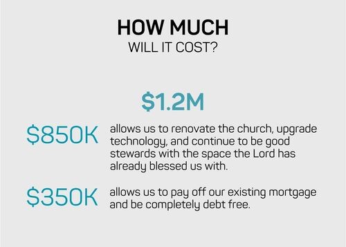 I encourage you to pray about your part in this journey. As God leads us through this process, you'll have the opportunity to ask questions and partner with us. Our success will depend on God's gracious provision through the faith and generous response of every one of us.