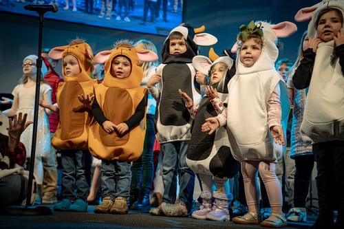 Every week, kids experience lively worship, interactive Bible stories, and exciting games, all in a safe, joyful space where they can grow in faith, build friendships, and discover just how much Jesus loves them.